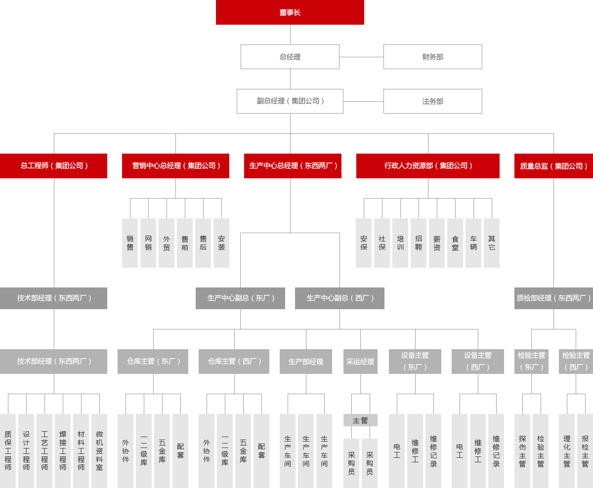 组织架构是企业管理的载体,是企业战略实施的政体。永兴锅炉在飞速发展过程中,根据自身特点逐步构建了良好的组织架构。它使得公司管理更加科学有序,管理层可以及时、准确地获取管理信息,不断促进战略管理能力的提升和绩效的提升,员工可以深刻认识到自己的责任,并拥有强烈的使命感。